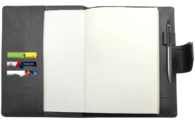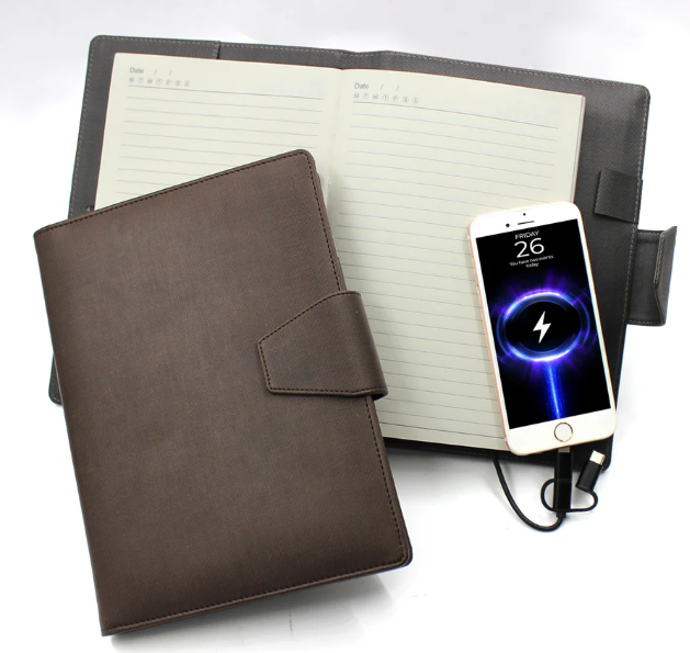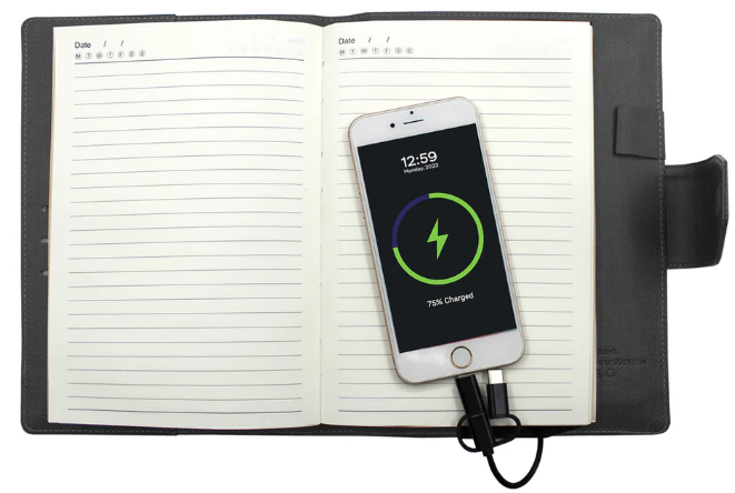 The ERGON Power Bank Notebook is a sleek and functional business essential, integrating a 5000 mAh power bank with a premium refillable notebook. Designed for on-the-go professionals, it features inbuilt charging cables compatible with iOS, Android, and Type-C devices. The stylish PU loop closure, combined with credit card and ID slots, ensures convenience and organization. A perfect corporate gift or personal companion, offering effortless power and productivity in one elegant package.