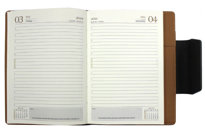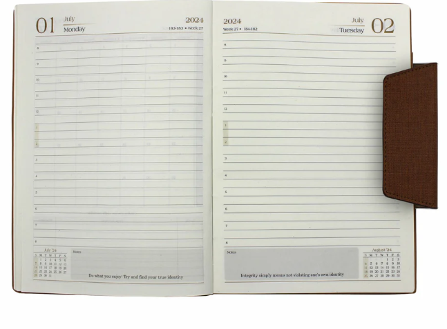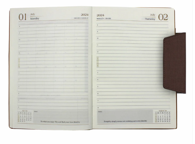 The PERTH Portfolio Diary is designed for elegance and efficiency. Featuring a linen-textured PU cover, it provides a sophisticated look and durable feel. The magnetic loop closure ensures secure handling, while the refillable sleeve cover makes it a long-lasting organizational tool. With both dated and multidate options, this diary is ideal for professionals who value flexibility and premium craftsmanship. Available in Brown, Black & Tan, it’s a stylish and functional choice for everyday planning.