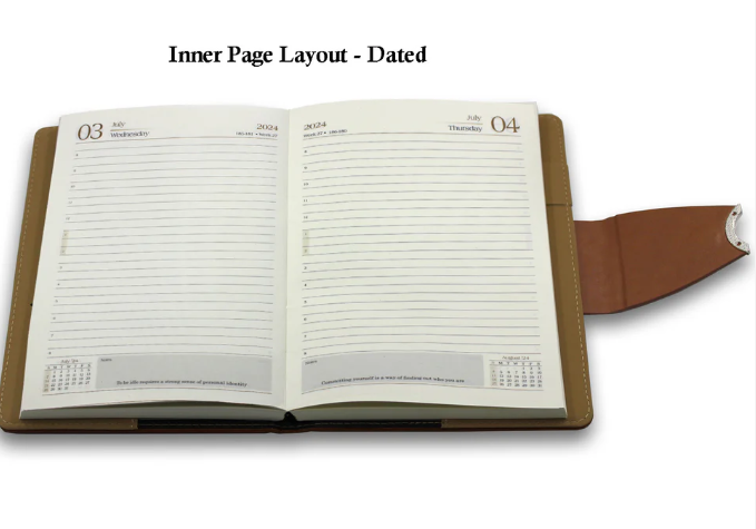 The SYMPHONY Portfolio Diary is designed for style and efficiency, featuring an exquisite PU cover with a refined deboss pattern on the loop. The magnetic loop closure adds a secure yet elegant touch, while the refillable sleeve cover ensures long-term usability. Available in both A5 and B5 sizes, this diary caters to diverse professional needs with its dated and multidate options. Perfect for those who appreciate premium craftsmanship and practicality, the SYMPHONY is available in Brown & Tan for a sophisticated look.