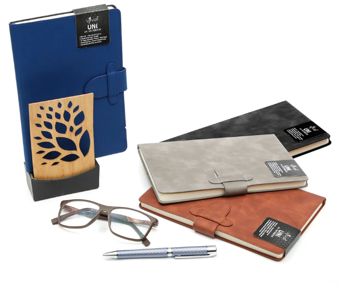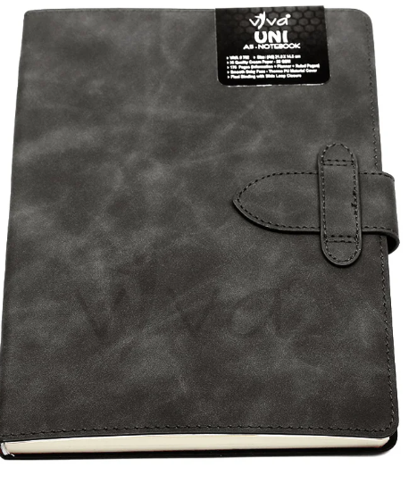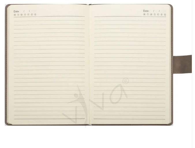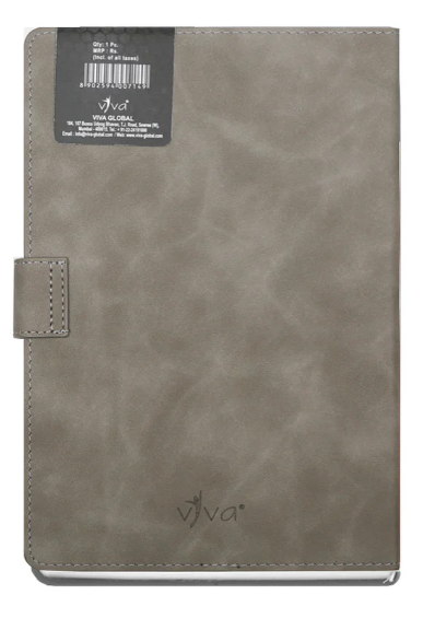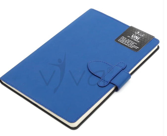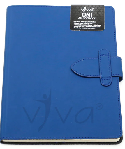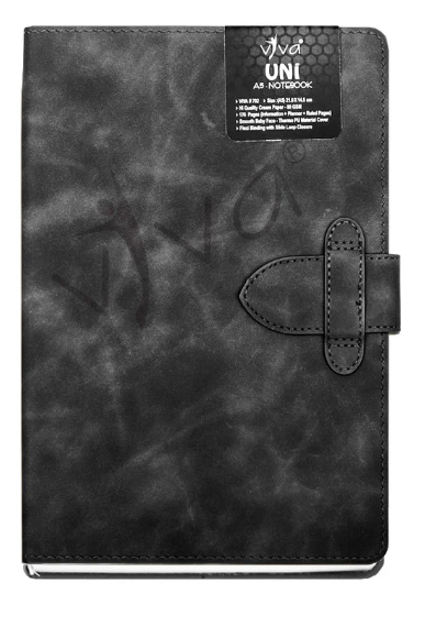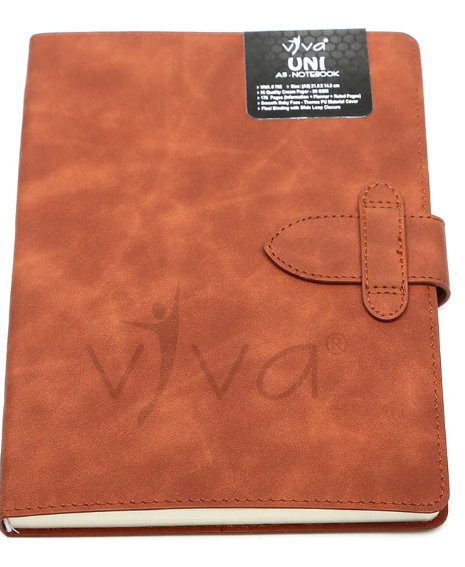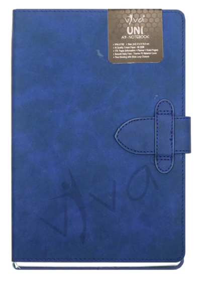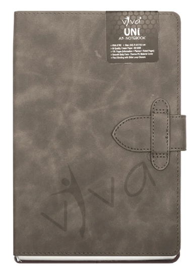 The UNI Journal Notebook (Product Code – VIVA #702) is a sleek and functional A5-sized (21.0 cm X 14.5 cm) notebook designed for efficiency and style. It features 176 pages of 80 GSM high-quality cream paper, offering a well-organized layout with information, planner, and ruled pages to enhance productivity. The baby face smooth PU cover provides a soft, premium feel, while the slide loop closure ensures secure handling. Available in four sophisticated colors – Tan, Blue, Grey, and Black – the UNI Journal is a perfect choice for professionals, students, and creatives seeking elegance and practicality.